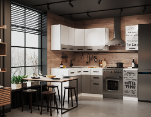 Кухня ARABIKA 1,4*2,3 м Анкор белый (Без столешницы, мойки, сушки)