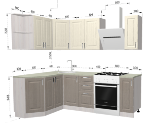 Кухня EXLUSIVE шато крем/шато латте 1,5 х 2,3м (Без столешницы, мойки, сушки)