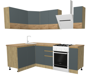 Кухня "Твист Базальт" 1.4*2.3 м Дуб бунратти/Базальт (Без столешницы, мойки, сушки)